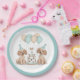 Uma bela ilustração cartoon dos cães de Poodle Standard vestindo um chapéu de aniversário em volta de um bolo de aniversário e balões. Perfeito para amantes de animais de estimação ou pais de cães.