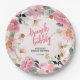 Prato De Papel Café da Manhã e Bolhas Rosa Floral Chá de Noiva
