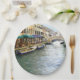 Conjunto de oito placas de papel de 9 polegadas com uma imagem de cafés quentes ao longo de um canal em Veneza, Itália. Ver pote de doces, caneca e azulejo de cerâmica quadrada correspondentes. Veja toda a coleção de placas italianas na seção HOME.