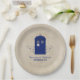 Papéis de Casamento Quirky e divertidos da Polícia Plates com uma brilhante caixa de polícia azul vintage flanqueada por turbilhões floresce e estrelas azuis num fundo de papel vintage falso. Fácil de personalizar, basta adicionar os detalhes do casamento nos campos de texto fornecidos. Clique em "Personalizar" para encontrar mais opções de personalização.