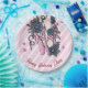 calçados de balé bonito para sua pequena bailarina, acentuados com flores e miçangas. Um fundo de faixa rosa e branca completa o conjunto. Pode ser personalizado.