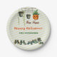 Uma festa divertida do Halloween, um prato personalizado para uma festa de horrores. Apresenta pinturas aquarelas de plantas penduradas (incluindo um jack o'lantern) e uma fileira de calçados gremlin. Itens correspondentes disponíveis.