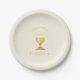 Este design tradicional consiste em um cálice e em um anfitrião dourados do comunhão em um fundo bege. O cálice do comunhão é o símbolo perfeito em comemoração do primeiro comunhão santamente da sua criança. Esta coleção é simplesmente bonita. Verifique para fora os acessórios, os presentes, os favoritos para festas e os artigos de papelaria de harmonização.