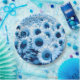 Placas de papel em um impressão Digital baseado em uma fotografia de girassóis - tons de azul do índio profundo ao azul-céu pálido, acentuados com o branco