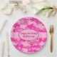 Prato De Papel Camuflagem Rosa Nome de Aniversário Feliz Personal