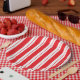 Bandas clássicas de canas, vermelhas e brancas, de Natal