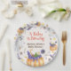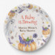 Candy Candy Cóteo Cáudia Fantasmas Halloween Baby Brewing Paper Plates, design apresenta fantasmas doces de cor d'água, abóbora, doce, chapéu de bruxa, morcego, teia de aranha e texto " Bebê está Brewing". Placas de chá de fraldas engraçadas e engraçadas para bebês, esperadas nos temas do Dia das Bruxas, outubro, outono e outono. você pode personalizar seu próprio texto. rapaz e raparigas, design neutro em termos de gênero.