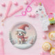 Prato De Papel Cãozinho de Natal bonito com chapéu de Santa
