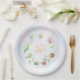 Bem-vindo a um mundo caprichoso de pequenas maravilhas da natureza com nossa coleção de chá de bebê "Um Pequeno Amorzinho Está a Caminho". Este prato de papel é encantador e é um prelúdio perfeito para um dia repleto de alegria e celebração. Adornado com elementos delicados de aquarela, o convite apresenta um conjunto encantador de uma abelha, borboleta, joaninha, caracol, lagarta, besouro e efemérida, cada um renderizado com um toque suave. A obra de arte está aninhada entre um florescer de flores e folhagens, criando uma cena de beleza natural e charme.
