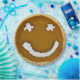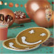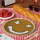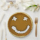Cara feliz com creme chicoteado na torta de abóbora de Ação de Graças