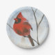 Uma pequena pintura aquosa de vida selvagem de um brilhante, macho, pássaro Cardinal com suas penas encharcadas para se manter quente em um dia frio de inverno.