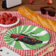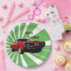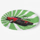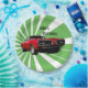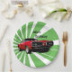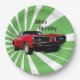 Carro de músculo vermelho contra um fundo dinâmico de placas de papel de raios verdes.