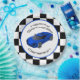 Essas placas de festas personalizadas apresentam uma bandeira de controle preto e branco e um tema de carro de corrida azul. Também estão disponíveis convites de aniversário e outros acessórios correspondentes. Por favor, visite minha loja aqui no Zazzle para ver os outros produtos e designs disponíveis e certifique-se de me seguir em busca de novas atualizações de produtos! Obrigado pelo seu interesse no SapphireDesigns!