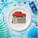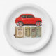 Chapas de papel para carros vintage vermelhos, medidores de diesel e placas de matrícula.