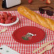 Design com uma ilustração de feliz sorriso de um homem afro-americano com o chapéu de Papai Noel; design de Natal por Radka Kavalcova