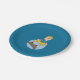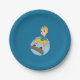 Design com a ilustração de um lindo patinador loiro saltando com o skate no ar; desenho esportivo extremo para crianças em fundo azul