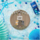 Placas de papel de chá de fraldas que ilustram uma árvore com folhas verdes e raízes expostas. Uma raposa e guaxinim sentam em cada lado do tronco e uma coruja senta-se em um cartaz envolto em um tronco que diz, "Bem-vindo, Bebê!" O recheio é branco.