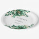 Esta placa de papel projetada para o casamento é mostrada com uma adorável impressão floral de magnólia verde. Também oferecemos guardanapos de papel correspondentes. Personalize este item e altere o texto do exemplo para o seu com este modelo. Imagem licenciada