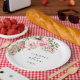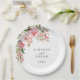 A placa de papel de casamento é mostrada com uma adorável impressão floral rosa rosa rosa rosa. Personalize este item e altere o texto do exemplo para o seu. Procure nossos guardanapos correspondentes. Impressão licenciado