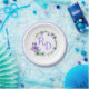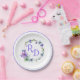 Bonito placa de papel de casamento feita em branco, com uma coroa floral colorida, com as iniciais da noiva e do noivo feitas em lavanda e lavanda, ao redor da borda da placa. Personalize as iniciais para suas necessidades de casamento. Os produtos correspondentes estão disponíveis.