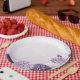 Prato De Papel casamento botânico com flores roxas