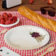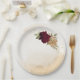 Linda placa de papel de casamento de outono apresentando flores grená e bege dourado com folhas verdes .