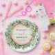 Placa de papel de tipo botânico russa com folhas elegantes de cor aquosa verde. Personalize a formulação adequada ao seu evento, ou seja, chá de fraldas, chá de panela, aniversário, batismo, batizar, comunhão sagrada, etc.