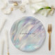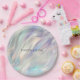 Prato De Papel Casamento Branco de Pérolas Azul Aqua