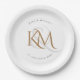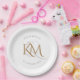 Prato De Papel Casamento Branco Elegante de Script Dourado Modern