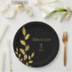 Prato De Papel Casamento Chic Moderno Dourado Folha Negra Elegant