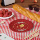 Prato De Papel Casamento chinês com terra floral geométrica de ou