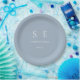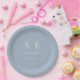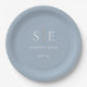 Este prato de papel azul empoeirado minimalista e elegante para casamento pode ser personalizado com suas iniciais de monograma, nomes e data especial. Criado por Thisisnotme©