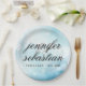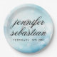Prato De Papel Casamento com monograma de Luz Azul Bokeh