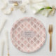 Prato De Papel Casamento com padrão de damasco dourado e rosa-cho