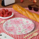 Belos cravos rosa em aquarela com longos caules verdes foram usados para criar um belo fundo para este prato de papel de recepção de casamento, chá de noiva ou chá de bebê. Três grandes cravos rosa em aquarela adicionam beleza que adornam este lindo design criando a louça perfeita para o seu evento. 100% de satisfação do cliente na Zazzle todos os dias.