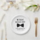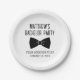 Você pode usar essas modernas placas de papel de arco preto de smoking na sua despedida de solteiro! Personalize com o nome do noivo e os detalhes da despedida de solteiro.