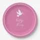 Simples gráfico de pomba branca com duas fitas cor-de-rosa para pratos de casamento. Personalize com seus próprios nomes de casamento e data ou mensagem. Outros itens correspondentes disponíveis. Arte original e design por www.mylittleedenweddings.com