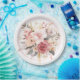 Floral cor-de-água rosa com folhas de folhagem de ouro e um círculo geométrico de álcool rosa. Os convites correspondentes e os suprimentos de partes estão disponíveis neste conjunto de coleções.