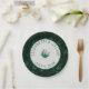 Placas de papel com flor branca de tipo gráfico, fundo branco com borda verde e fundo floral. O texto é personalizável. Procure produtos de casamento.