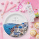 Prato De Papel Casamento de Destino em Santorini Grécia com Aquar