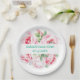 Prato De Papel Casamento de Folhagem Rosa e Verde Personalizado
