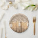 Pratos de Casamento de Jarro de Pedreiro Iluminado e Renda de Madeira Rústica. Personalize com qualquer texto. Itens correspondentes estão disponíveis.