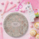 Pratos de papel de casamento com recorte de álbum de recortes rosa vintage dourado projetados para serem personalizados rápida e facilmente de acordo com as especificidades do seu evento.