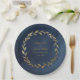 Prato De Papel Casamento de Marinho Elegante e Ramo de Oliva Dour