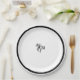 Prato De Papel Casamento de Monograma Branco e Preto Moderno
