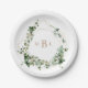 Prato De Papel Casamento de Monograma Geométrico Dourado com Folh