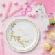 Prato De Papel Casamento de Script de Nome Elegante Folha Dourada