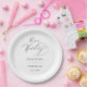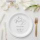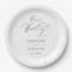 Prato De Papel Casamento de Script Moderno Branco Negro Simples