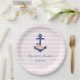 Âncora náutica azul concebida com os florais ranunculus, cor-de-rosa e branco, com eucalipto verde para um evento de Verão