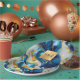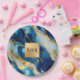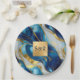 Prato De Papel Casamento Dourado, Azul e Branco Marmoreado Monogr